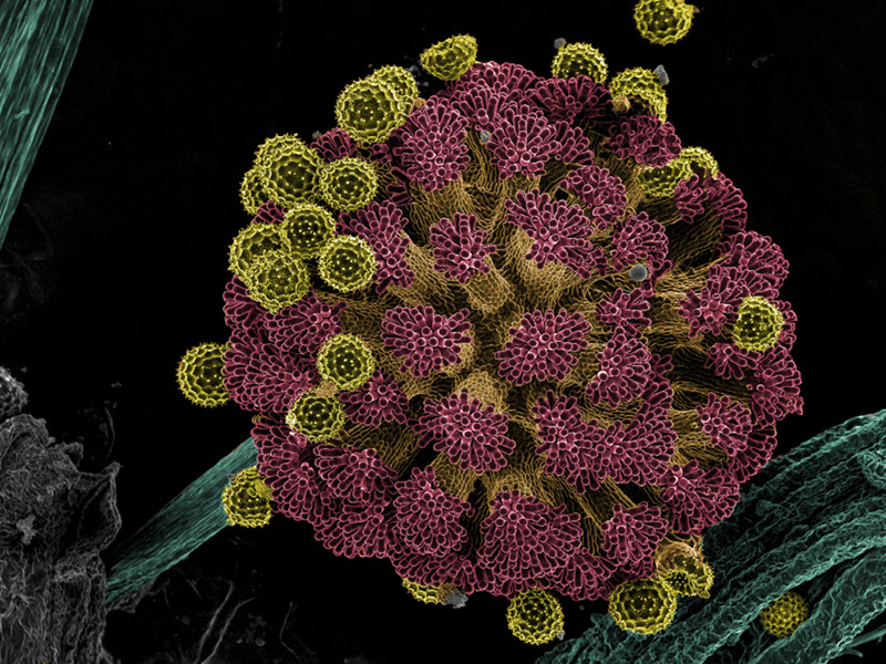The Grand Prize Scanning Electron Microscope (SEM) Image award was given to Flávio Loureiro, an engineer working in the laboratories of a Vallourec Group’s plant located in Brazil. His image “Seeds in the Cradle” is both artistic and detailed, showing Pollen grains over the stigma of an aster flower (Symphyotrichum Tradescantii). Vallourec is a steel mill that produces seamless pipes, and the company uses the JSM-6360 SEM for quality control and imaging of metallic materials. Loureiro says, “In the case of this particular image, my purpose was really just because of my curiosity, and because I really love to work with SEM images! I would give a brief lecture on SEM for some colleagues; I wanted to obtain an image that could reflect the capabilities of the instrument, revealing how beautiful and surprising can be the nature in its details, just nearby us. So, I caught this very simple flower that was in the lab’s garden, and started to analyze it on the SEM! In fact, I could say that the main drive for this image was just curiosity and beauty.”
