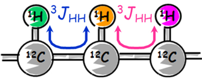 COSY shows correlations between adjacent 1Hs - in other words, 1Hs that are 3 bonds apart. The spin coupling of 3 bonds apart is expressed as 3JHH. If the adjacent 1H is known, the connection of 1Hs in a molecule can be understood.