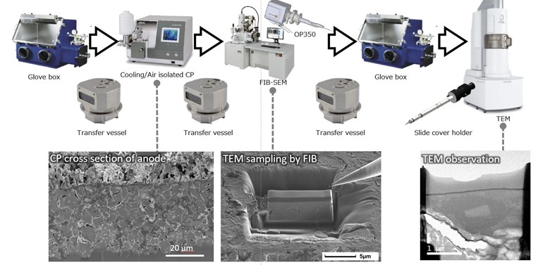 However, since materials containing Li are reactive in ambient environments, being able to prepare, image, and analyze samples without exposing them to the atmosphere becomes vitally important. For that purpose, JEOL has established an