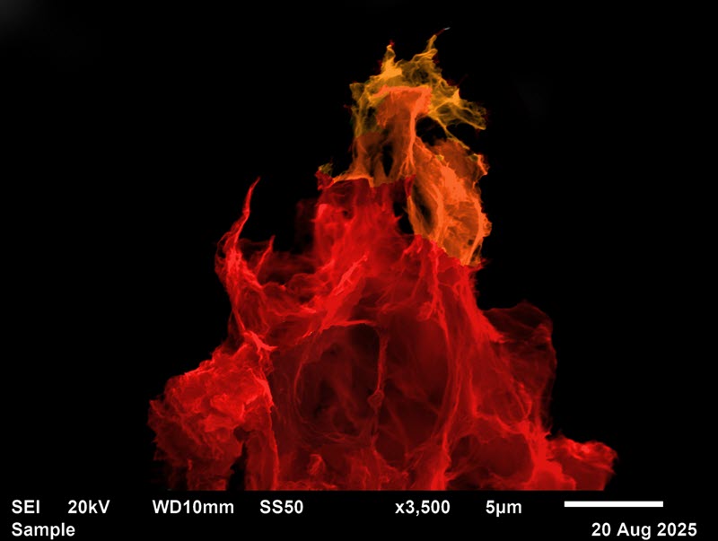 SUBJECT: Reduced Graphene Oxide (rGO); CREDIT: Yslaine Andrade de Almeida, Federal University of Sergipe; METHOD/INSTRUMENT: SEM-LV (JSM6510LV)