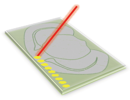 A tissue section is placed on an ITO-coated glass slide, and matrix solution is sprayed onto the surface.