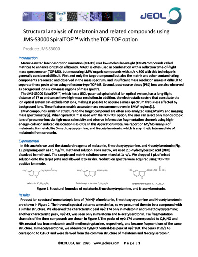 Structural analysis of melatonin and related compounds using JMS-S3000 SpiralTOFTM with the TOF-TOF option