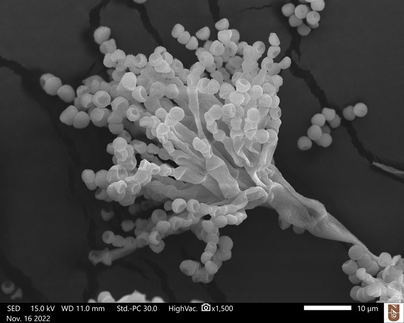 TITLE: Fully Hydrating Facial; SUBJECT: Head of Clonal Raider Ant larva (no fixation, near native state); CREDIT: Anurag Sharma (Electron Microscopy Resource Center) & Parviz Daniel Hejazi Pastor (Kronauer Lab), The Rockefeller University, NY, USA; METHOD/INSTRUMENTATION: Poor Man’s Cryo-SEM was conducted using JEOL JSM IT500HR.
